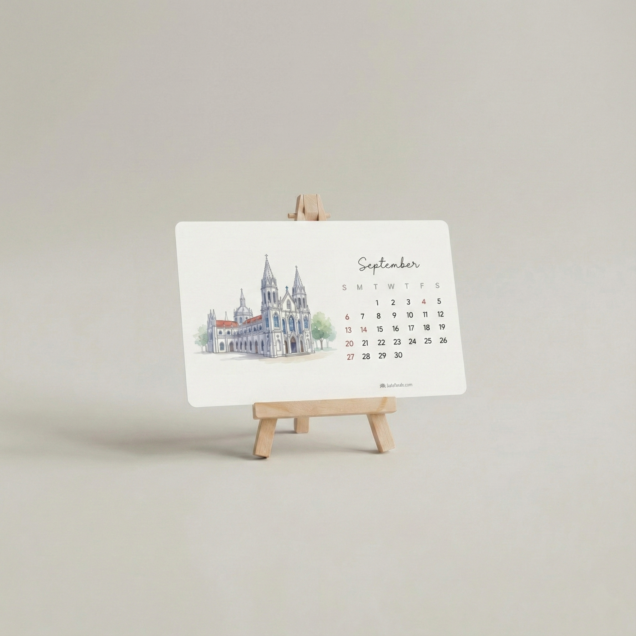 A clean and elegant A6 desk calendar featuring artwork inspired by iconic structures and modern architectural moods, perfect for minimal and contemporary spaces.